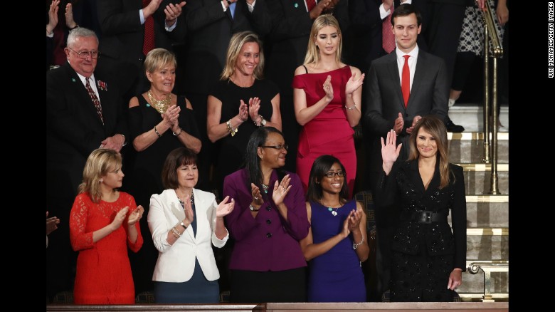 First Lady Melania Trump (bottom right) arrives at a joint session of Congress to hear a speech by her husband, President Donald Trump, on Tuesday, February 28. (Courtesy: CNN)
