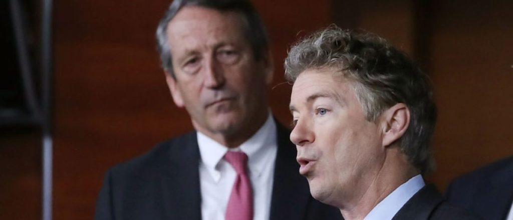 Sen. Rand Paul (R-KY) (R) and Rep. Mark Sanford (R-SC) speak to the media at a news conference to discuss their Affordable Care Act replacement legislation, on Capitol Hill February 15, 2017 in Washington, DC. Sen. Paul said the legislation is the conservative solution to replacing Obamacare. (Courtesy: Mark Wilson/Getty Images)