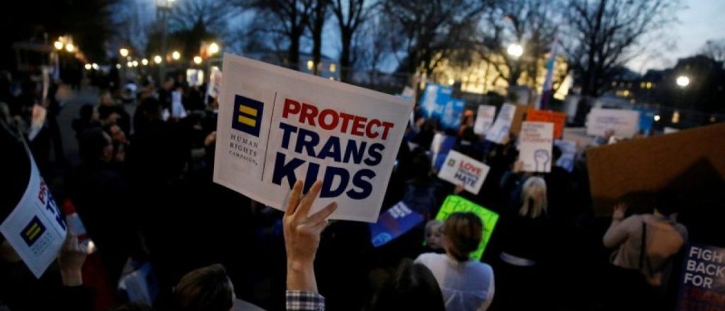 Transgender activists and supporters protest the Trump administration’s decision to revoke Obama administration guidance that allowed transgender public school students to use the bathroom of their choice, near the White House in Washington, U.S. on February 22, 2017. (Courtesy: Reuters)