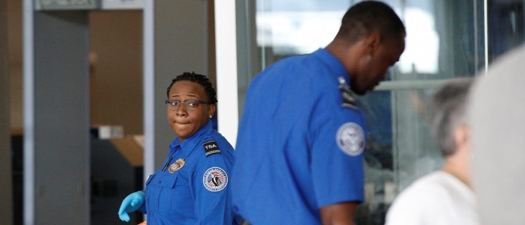 Transportation Security Administration (TSA) agents check-in passengers at JFK. (Courtesy: Reuters)